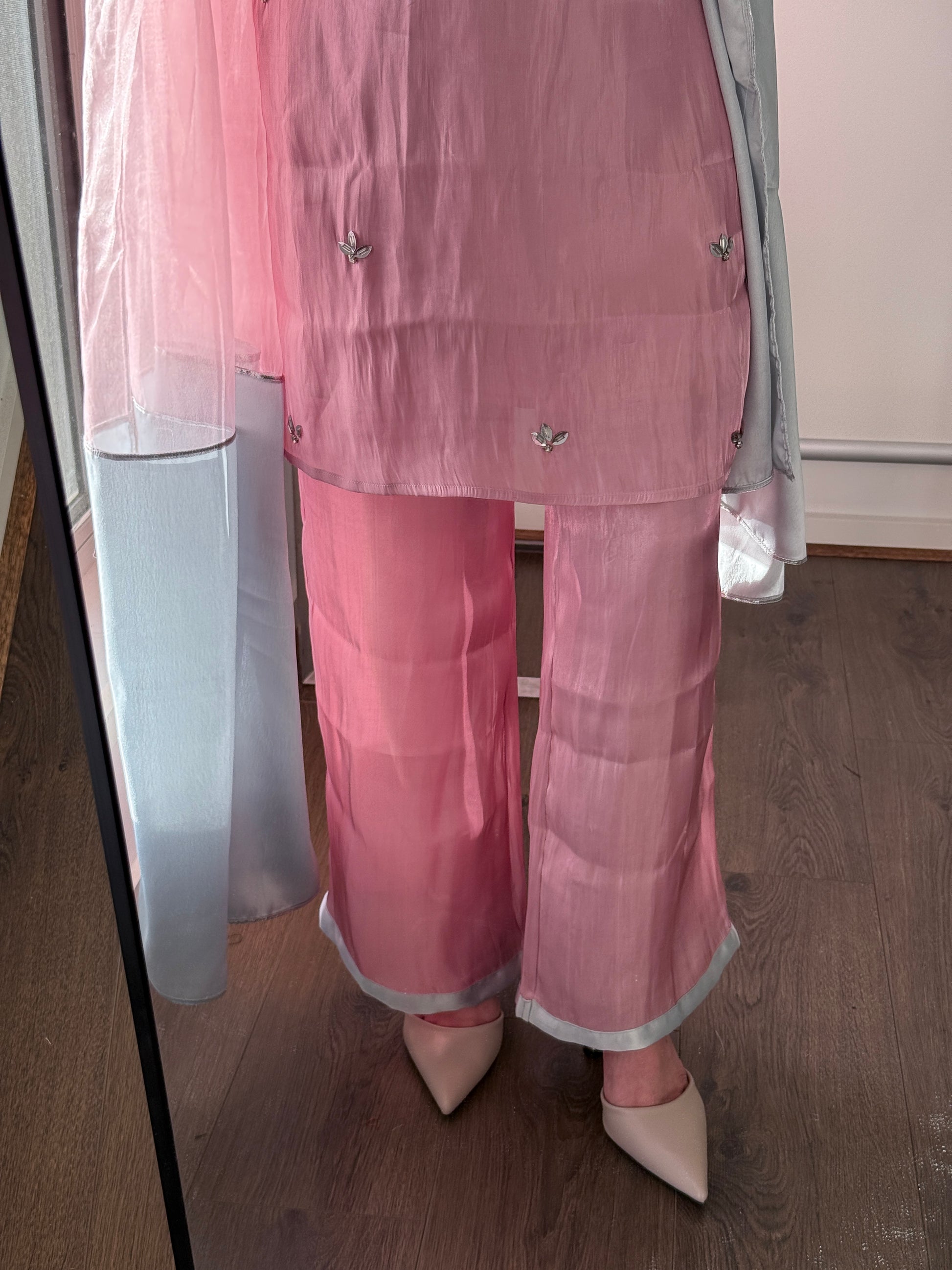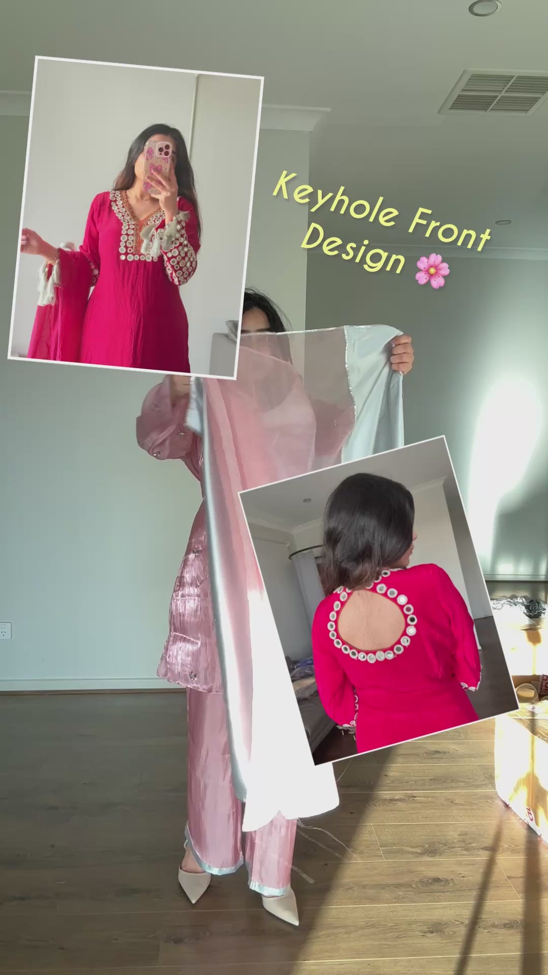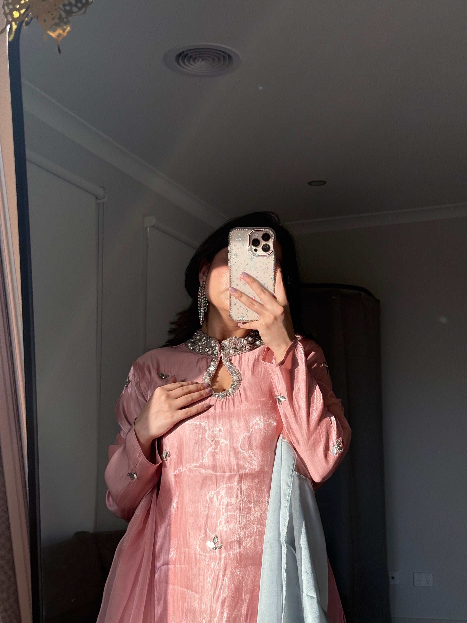 Pastel Pink colour with keyhole design on front & stone work detailing.