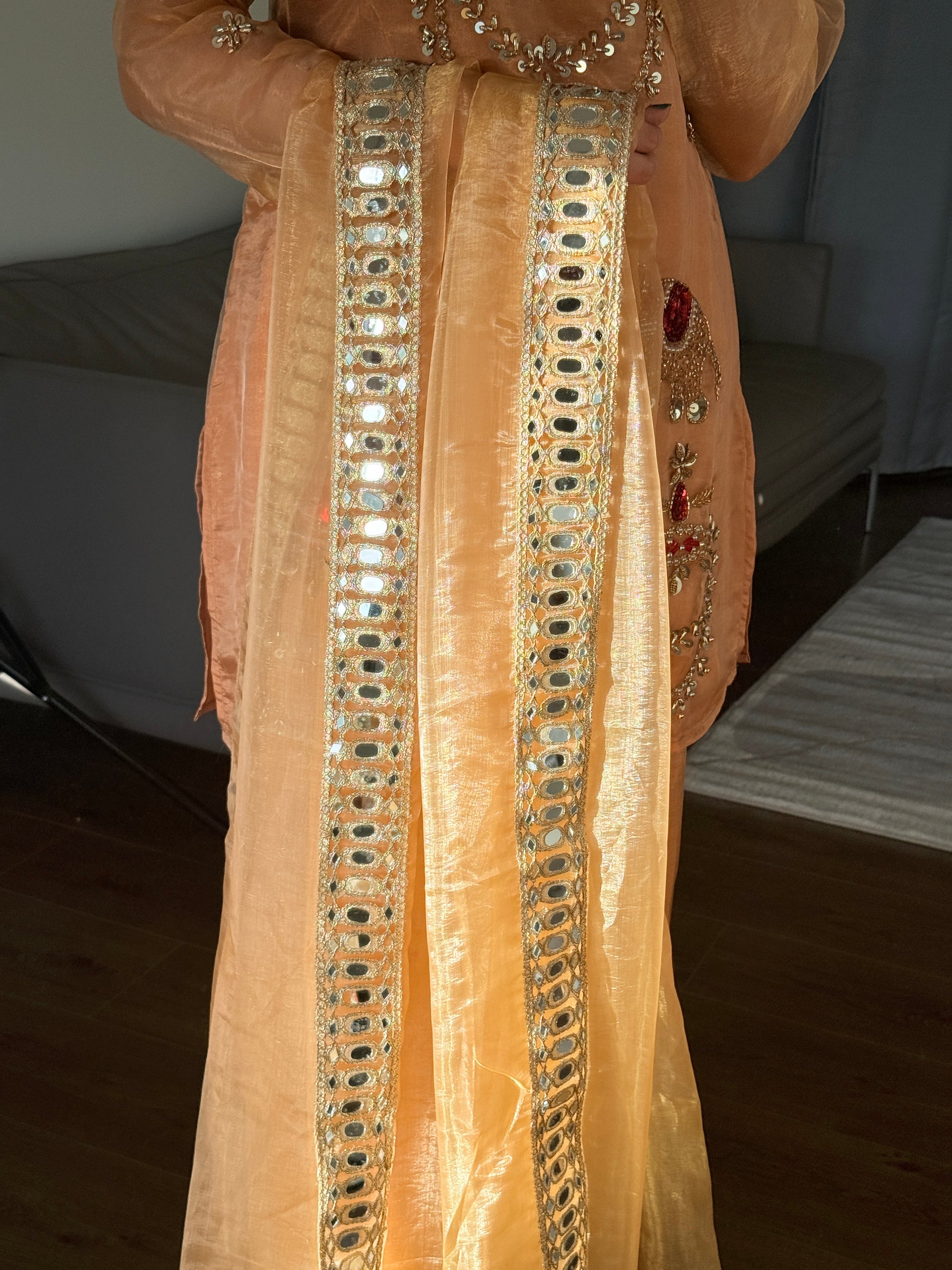 Made in Premium Glass Organza with Handwork. Very Light weight & comfortable. Ideal for festive occasions, celebrations, and special gatherings.